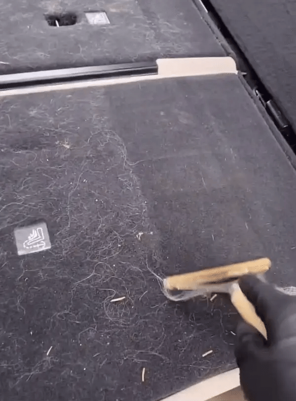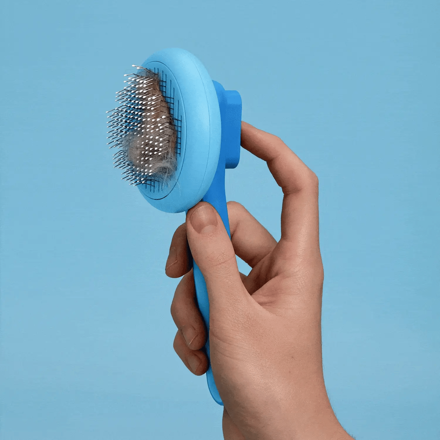 Cleaning is simple! Just press the self-cleaning button on the back of the brush, and the collected fur will retract, allowing you to easily wipe it away.